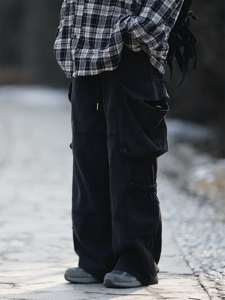 アメリカンウォッシュマルチポケットワイドレッグパンツ A00004