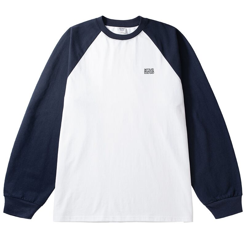 ラウンドネックコットンラグランロングスリーブ T シャツ