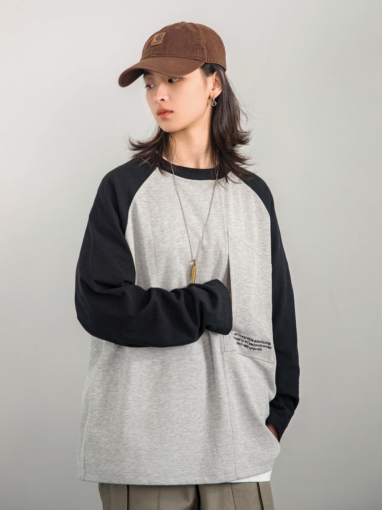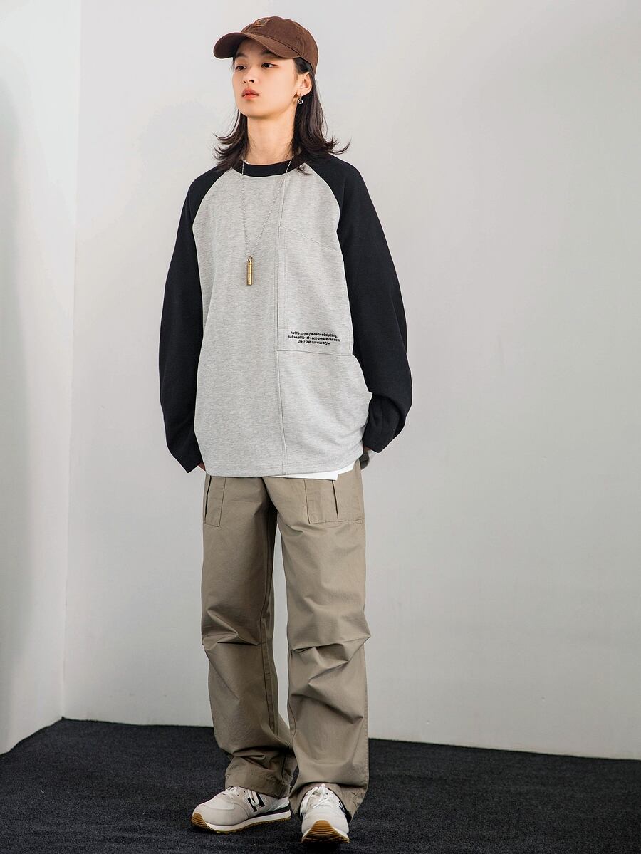 春に最適なラウンドネック配色長袖ポケットTシャツです。男女兼用で、日本製の高品質アイテム。ティーンエイジャーに人気のスタイルで、ボトミングにもぴったり。Tシャツのトレンドを取り入れた一枚です。
