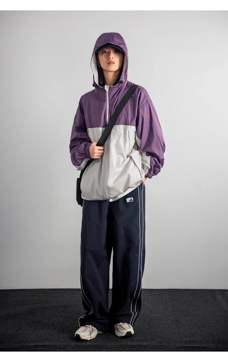 薄手パッチワーク伸縮性ウエストカジュアルパンツ